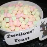 I thought it would be awesome to have a Zweilous eating contest. I had a bunch of extra marshmallows that the kids could gobble and whoever ate the most could lead a parade around the yard! However, I ended up just putting the marshmallows in a bowl for everyone to share. Somehow, I didn’t think the other parents would appreciate me stuffing their kids full of sugary treats right before bedtime…